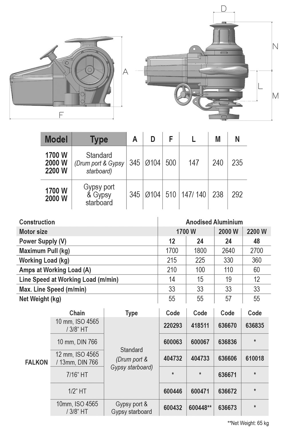 | 600446 | WINDLASS H. FALKON ALU G+D 1700W/12V 1/2 HT |