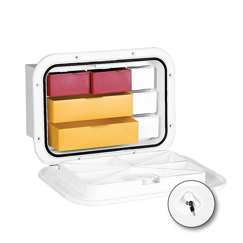 Designed and produced in Italy, our high quality TOP LINE storage deck hatches with drawers are ideal for every sailboat or yacht. Available in dimensions of 270 x 375 mm and in a variety of colors (white,grey, cream), these hatches can cover the needs of boats of any size.