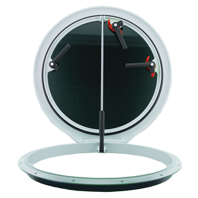 EURO 38 & 59 round shaped portlights are available in two dimensions (Ø38cm & Ø59cm). They are white, round framed portlights with a thick frame made of UV-resistant high-grade ASA, providing resistance to damage and chemical solvents. They have a UV resistant, 8mm thick plexiglass window, that can stay open. Designed for external use. Can be mounted both horizontally and vertically.